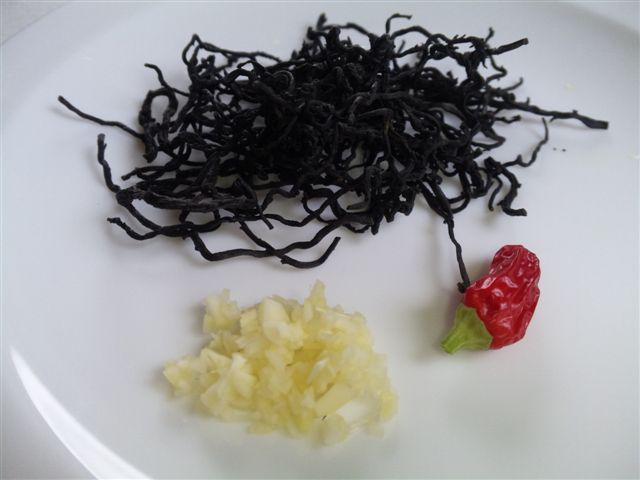 長ひじきは水でもどし、食べやすい大きさに切っておく