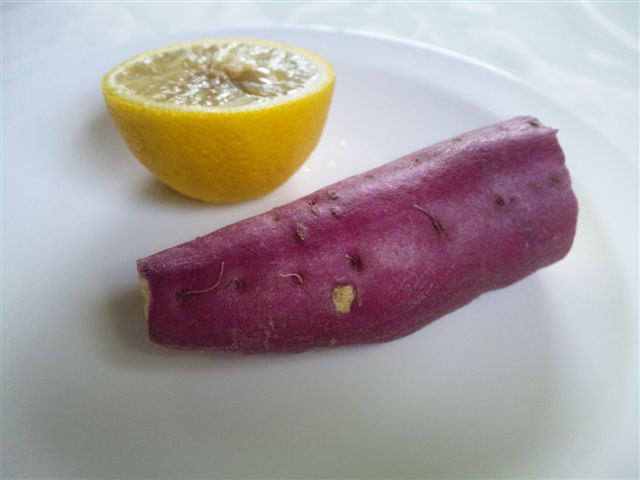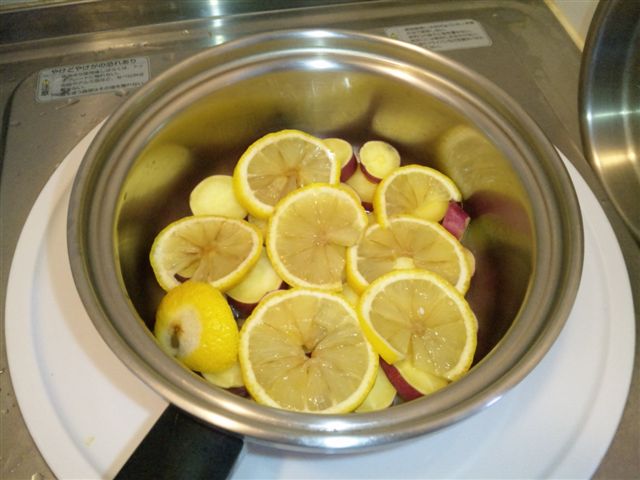さつまいも・レモンは輪切り、もしくは半月切りにする。
