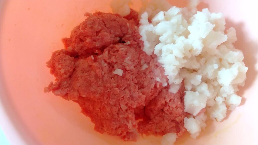 - 鍋に水・顆粒だしを入れて煮立て、玉ねぎを煮る。