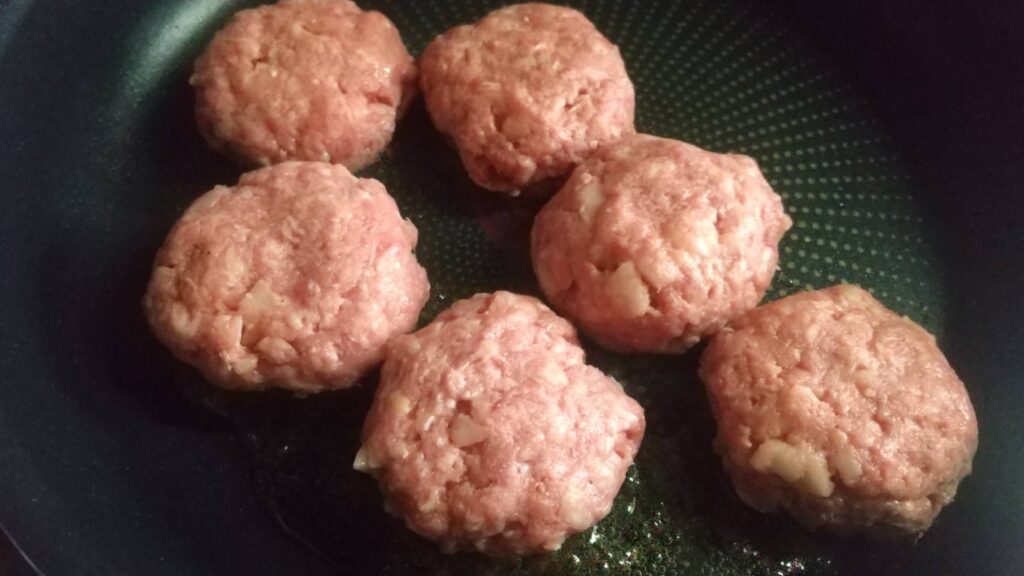 フライパンにサラダ油を入れて中火で熱し、肉だんごを並べ入れる。強めの中火にし、両面をこんがりと焼く。