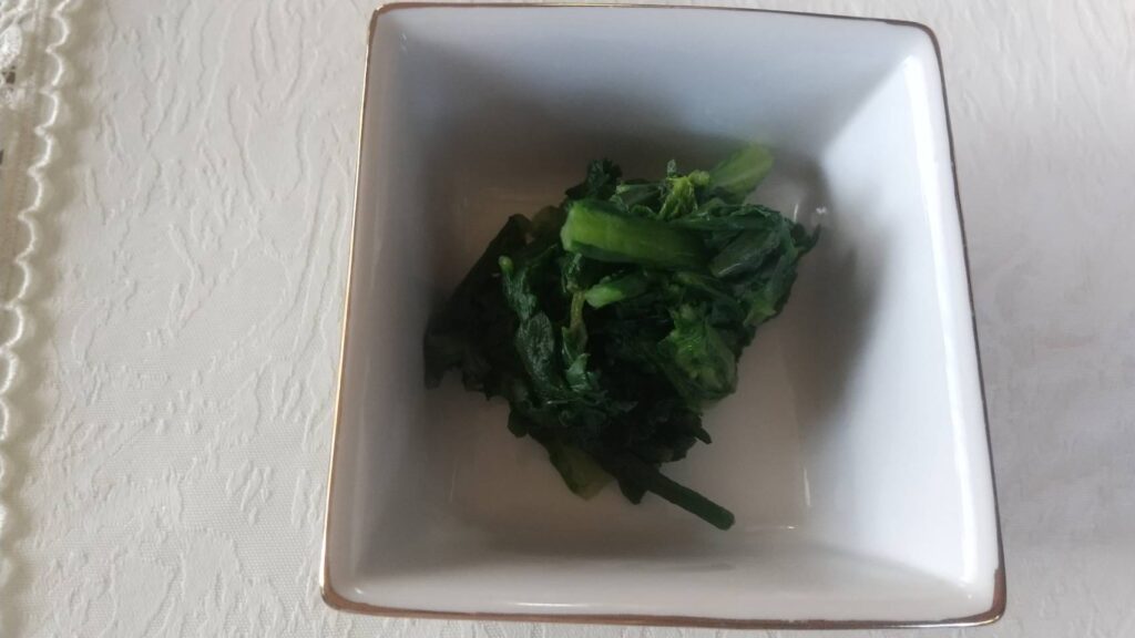 春菊の水気をしっかり絞り昆布茶と和えれば完成です。